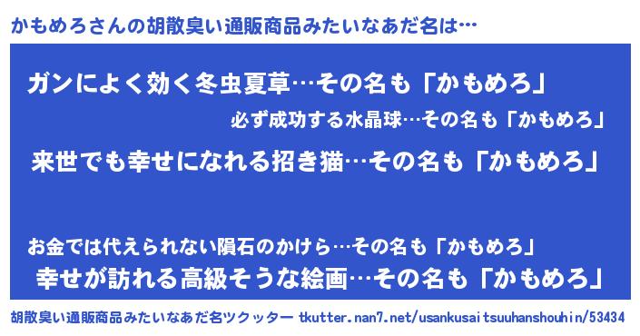 | 意味不明あだ名 | 『もやし科かもめろ属』『自称かもめろ』 |