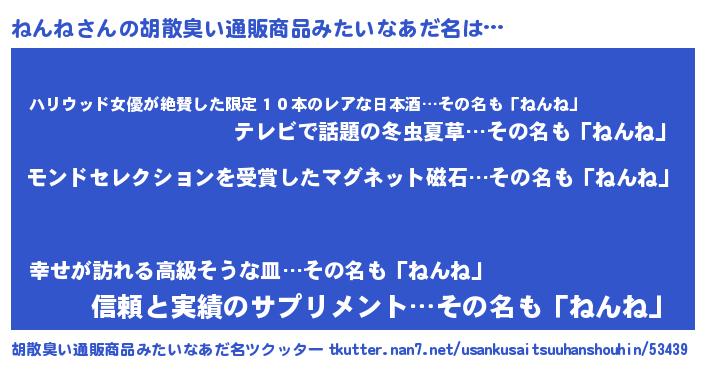 | ヘコむあだ名 | 『ねん太郎』『牛乳』『ねんふぇ~』 |