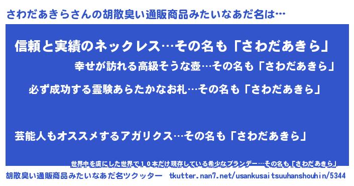 | 恥ずかしいあだ名 | 『プリティーさわだあきら』『さわっちょ』 |