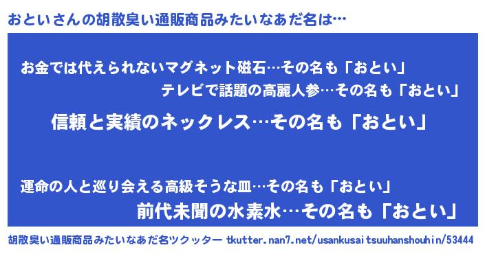| 意味不明あだ名 | 『とにかく怪しいおとい』『自称おとい』 |