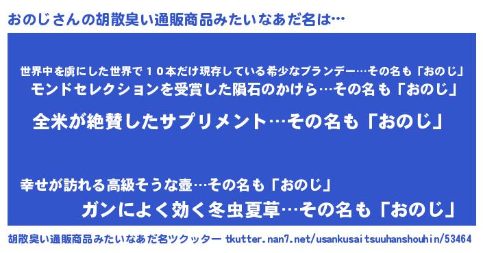 | 意味不明あだ名 | 『とにかく怪しいおのじ』『自称おのじ』 |