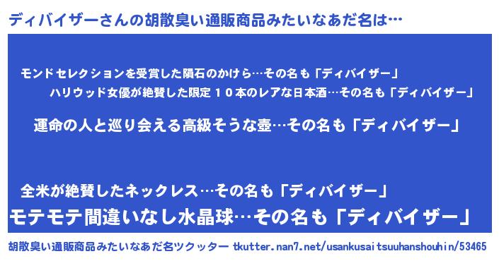 | 男性向けラノベタイトル風あだ名 | 『ディバイザーに滅ぼされるだけの簡単なお仕事です』 |