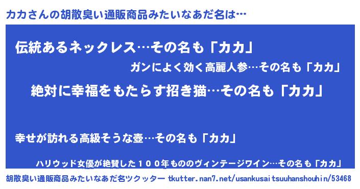 | ヘコむあだ名 | 『カカ(笑)』『カカっ子』『レバニラ』 |