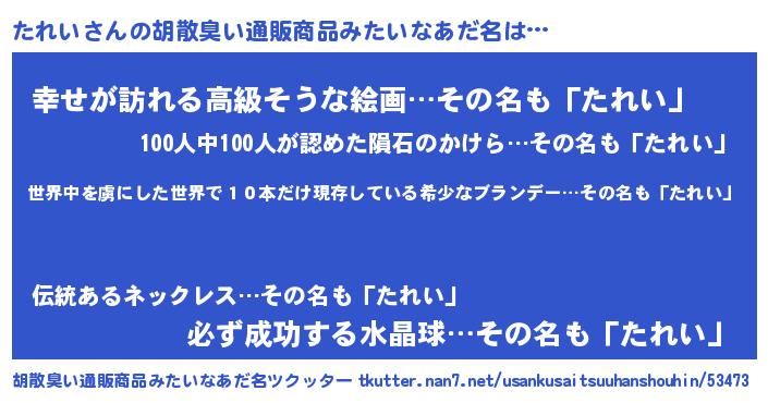 | 意味不明あだ名 | 『住所不定無職たれい(89歳)』 |
