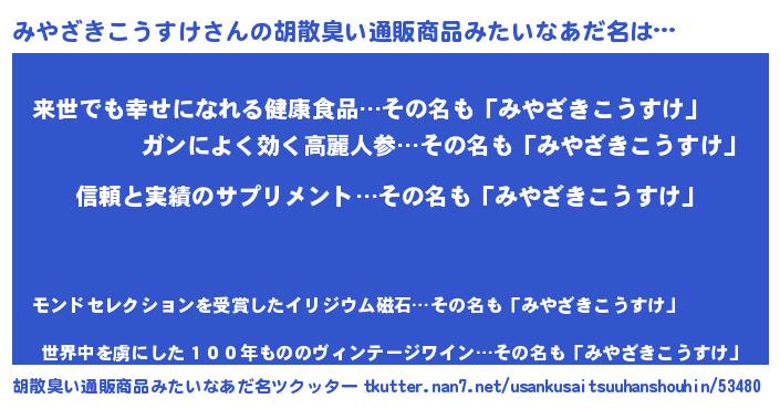 | ヘコむあだ名 | 『みやを』『みやざきこうすけ(震え声)』 |
