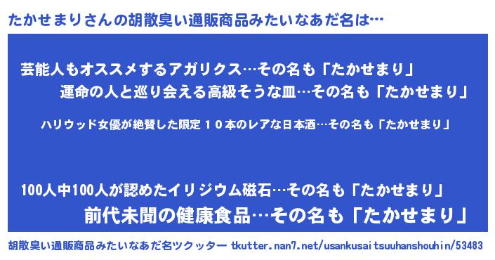 | ヘコむあだ名 | 『たかせまり(爆)』『酢こんぶ』 |