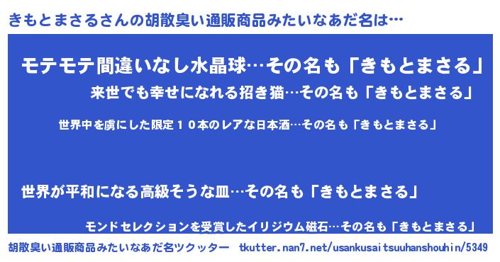 | 意味不明あだ名 | 『住所不定無職きもとまさる(53歳)』 |