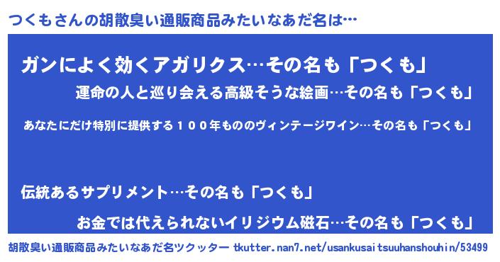 | 意味不明あだ名 | 『ヨモギ科つくも属』『自称つくも』 |