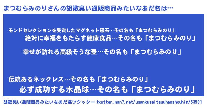| 意味不明あだ名 | 『まつむらみのりフォーエバー』 |