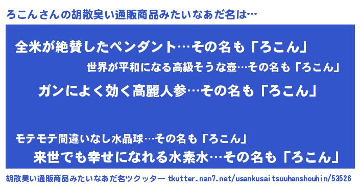 | 女子向けラノベタイトル風あだ名 | 『ろこんなんてお断りですっ。』 |