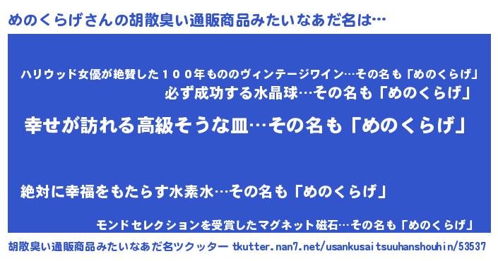 | 意味不明あだ名 | 『めのくらげフォーエバー』 |