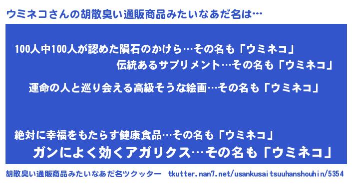 | ヘコむあだ名 | 『酢こんぶ』『ウミっちょ』 |