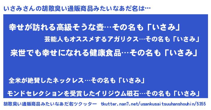 | ヘコむあだ名 | 『いさみ(爆)』『牛乳』『いさっぺ』 |