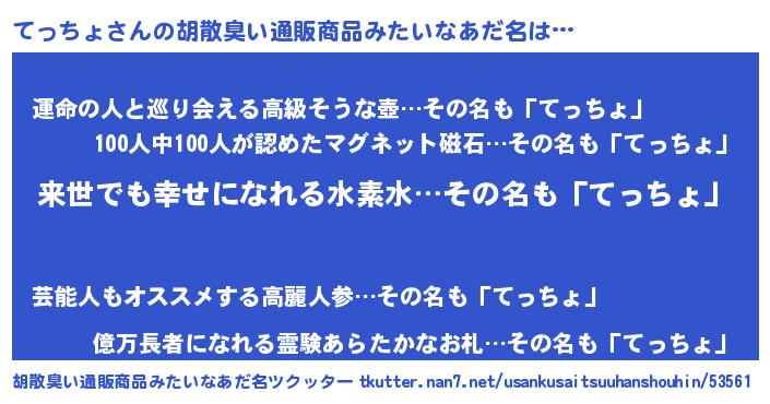| ヒーロー風カッコイイあだ名 | 『ネオテッチョ』『ウルトラてっちょマン』 |