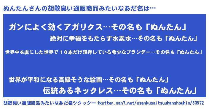 | 男性向けラノベタイトル風あだ名 | 『ぬんたんに滅ぼされるだけの簡単なお仕事です』 |