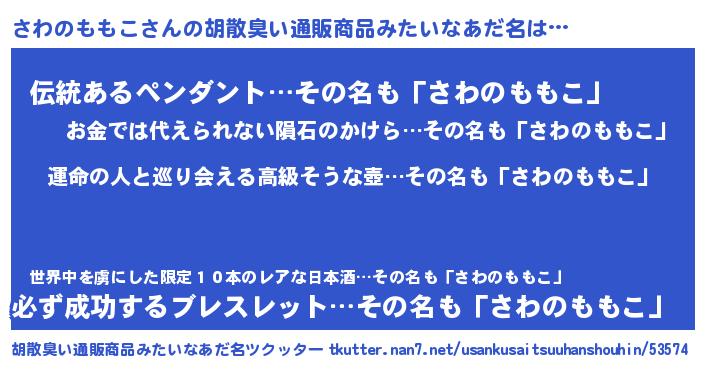 | 男性向けラノベタイトル風あだ名 | 『さわのももこに滅ぼされるだけの簡単なお仕事です』 |