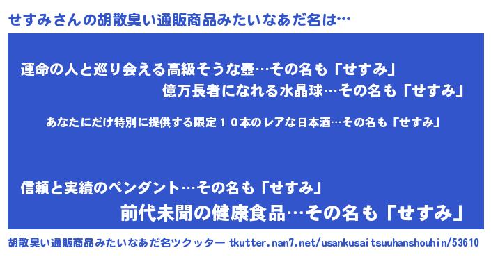 | 意味不明あだ名 | 『住所不定無職せすみ(47歳)』 |