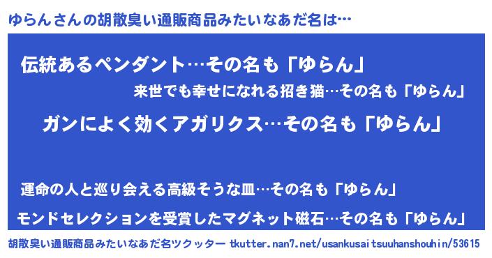 | 意味不明あだ名 | 『自称ゆらん』『とにかく怪しいゆらん』 |