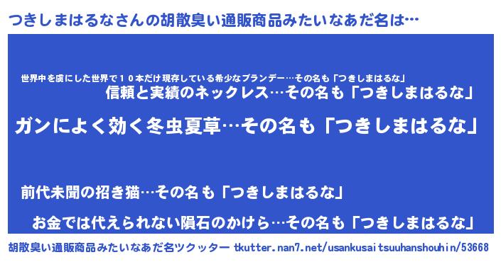 | 意味不明あだ名 | 『自称つきしまはるな』 |