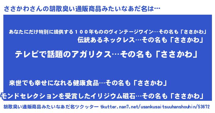 | 意味不明あだ名 | 『自称ささかわ』『つくし科ささかわ属』 |