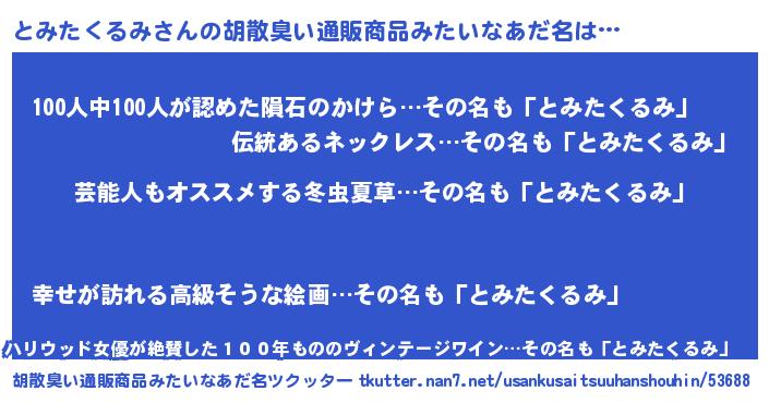 | 恥ずかしいあだ名 | 『トミタクルミデラックス』『とみっちょ』 |