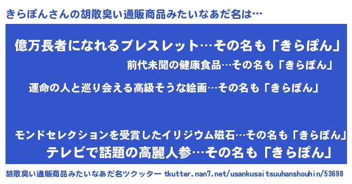 | ヒーロー風カッコイイあだ名 | 『ウルトラきらぽんマン』『ネオキラポン』 |