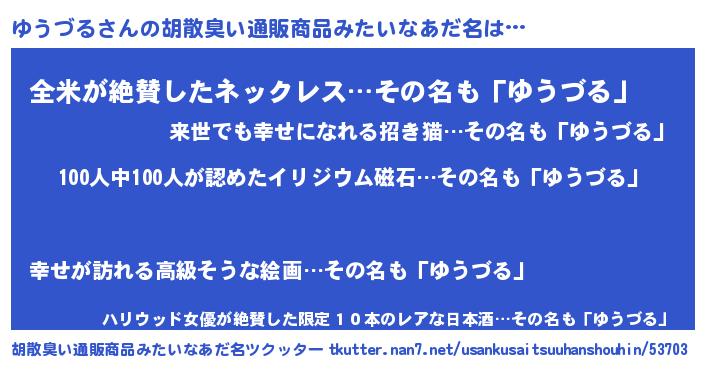 ゆうづるさんの胡散臭い通販商品みたいなあだ名をツクッター!