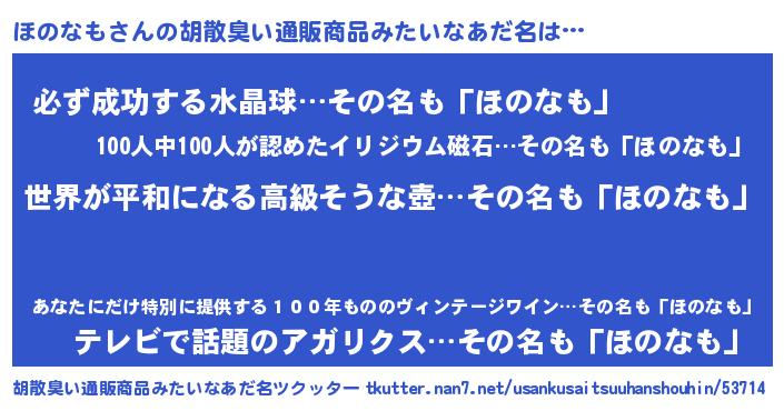 | 男性向けラノベタイトル風あだ名 | 『はたらくほのなもさま!』 |