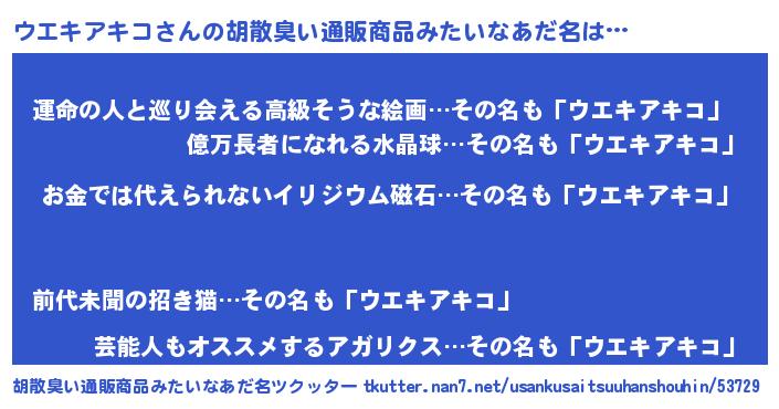 | 肩書あだ名 | 『ウエキアキコディレクター』 |