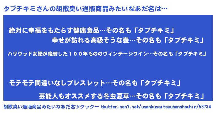 | ヘコむあだ名 | 『タブチキミ(笑)』『牛乳』『タブお』 |