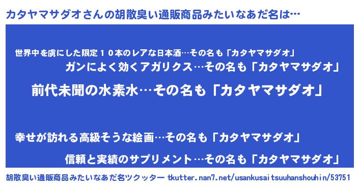 | 意味不明あだ名 | 『永久保存カタヤマサダオ』 |