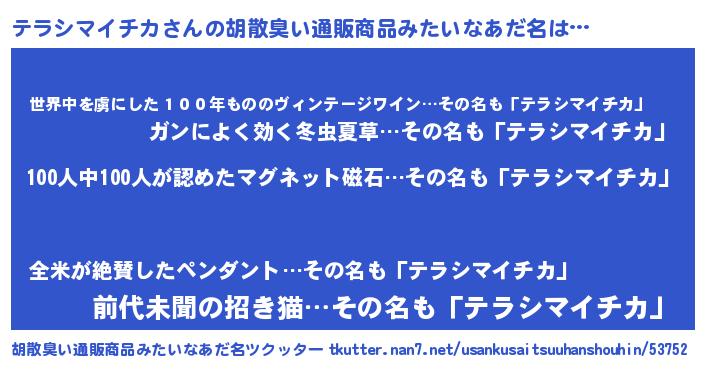テラシマイチカさんの胡散臭い通販商品みたいなあだ名をツクッター!