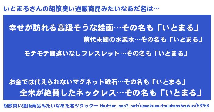 | 意味不明あだ名 | 『ペロリンいとまる』『永久保存いとまる』 |