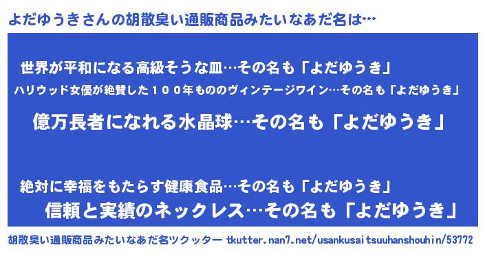 | ヘコむあだ名 | 『よだふぇ~』『なまこ酢』『よだお』 |