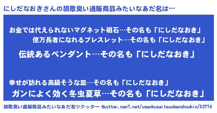 | 肩書あだ名 | 『にしだなおき塾長』『にしだなおき助手』 |