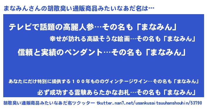 | ポケモン風あだ名 | 『ヒマナミン』『マナゴンZ』 |