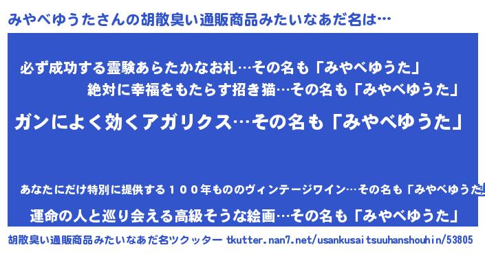 | 恥ずかしいあだ名 | 『ミヤベユウタデラックス』『みやっちょ』 |
