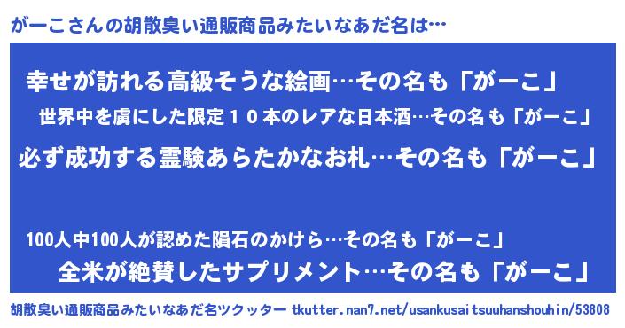 | ピコ太郎風あだ名 | 『ガコ六郎』『ピガ次郎』『ガー三郎』 |