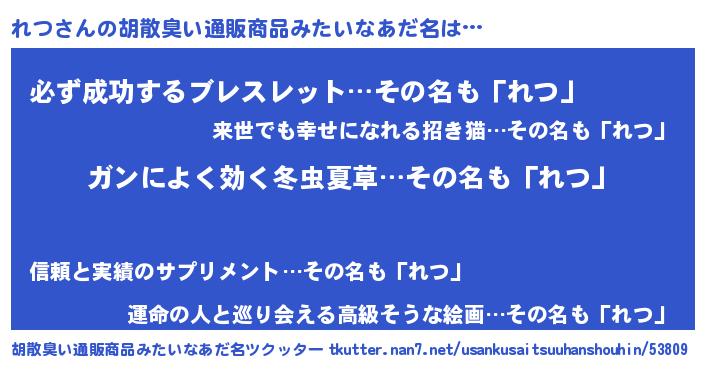 | ヘコむあだ名 | 『れつもー』『牛乳』『れつ(笑)』 |