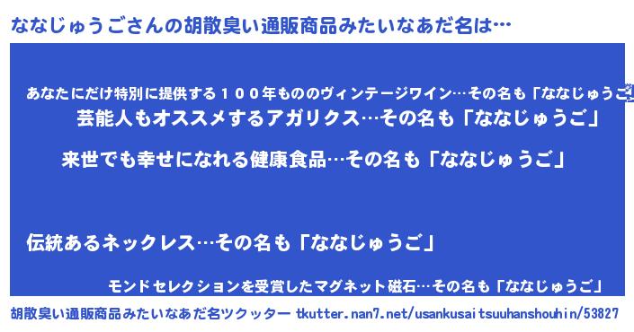 | 意味不明あだ名 | 『永久保存ななじゅうご』 |