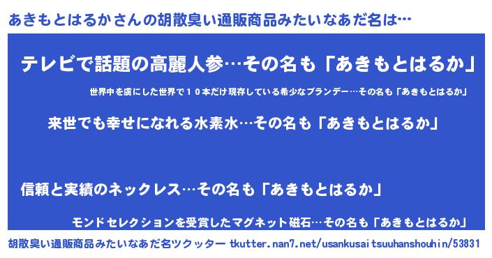 | ヘコむあだ名 | 『あきもとはるか(震え声)』『あきを』 |