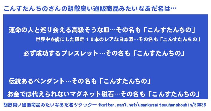 | 男性向けラノベタイトル風あだ名 | 『こんすたんちのの憂鬱』 |