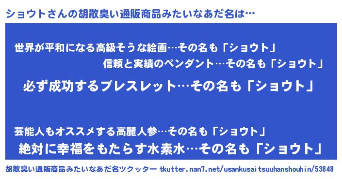 | ヘコむあだ名 | 『ショふぇ~』『豆乳』『ショお』 |