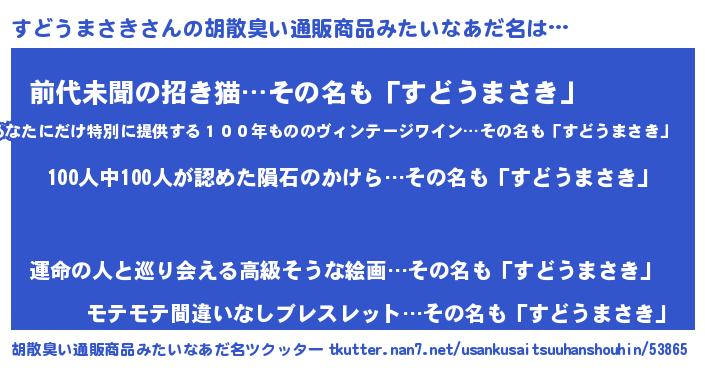 | ヘコむあだ名 | 『すどうまさき(震え声)』『すどっふぃ~』 |