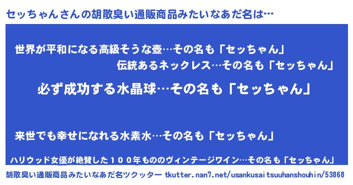 | ファンタジー風あだ名 | 『セッフェル』『エターナルセッチャンー』 |