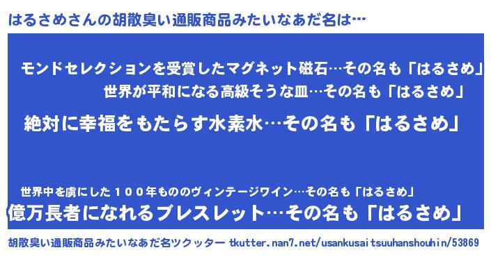 | ヒーロー風カッコイイあだ名 | 『ネオハルサメ』『正義の使者はるさめ』 |