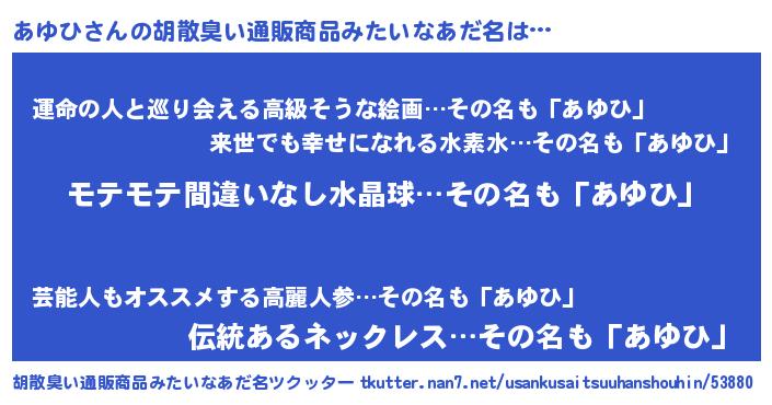 ファンタジー風あだ名 | 『アユフェル』『エターナルアユヒー』 |