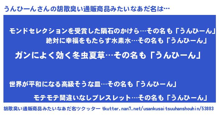 | 意味不明あだ名 | 『自称うんひーん』『ペロリンうんひーん』 |