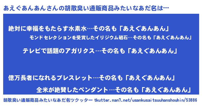 | 欧米人風あだ名 | 『ケンブリッジあえぐあんあん』 |