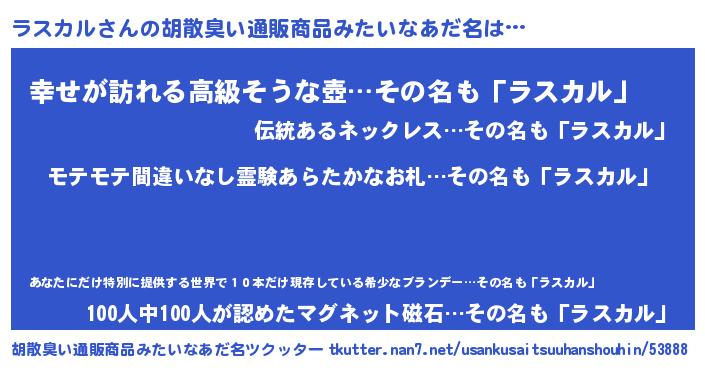 | ヘコむあだ名 | 『ラスっふぃ~』『つくし』『ラスお』 |